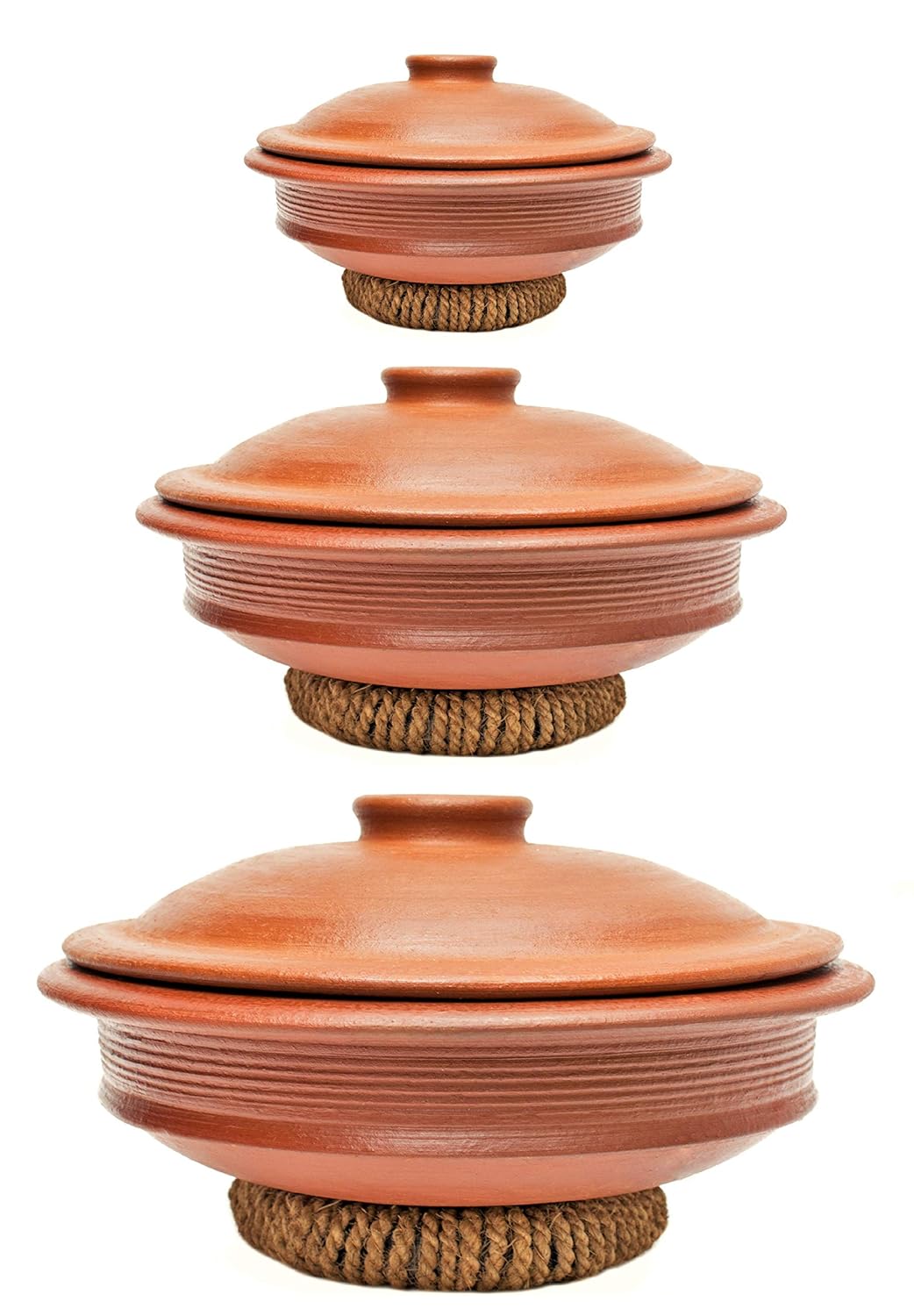 Craftsman India Pottery Earthen Kadai/Clay Pots Combo for Cooking 1,2 & 3 Liter Unglazed (Red)